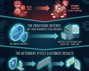 The Deterrent Effect: Auditors are human; they look for the path of least resistance. When they encounter the level of preparation provided by ProxyCore, they quickly realize that there are no 'easy wins' or 'fishing expeditions' to be had here. Often, the sheer quality and volume of our initial response are enough to satisfy the inquiry, causing regulators to move on to more vulnerable targets.