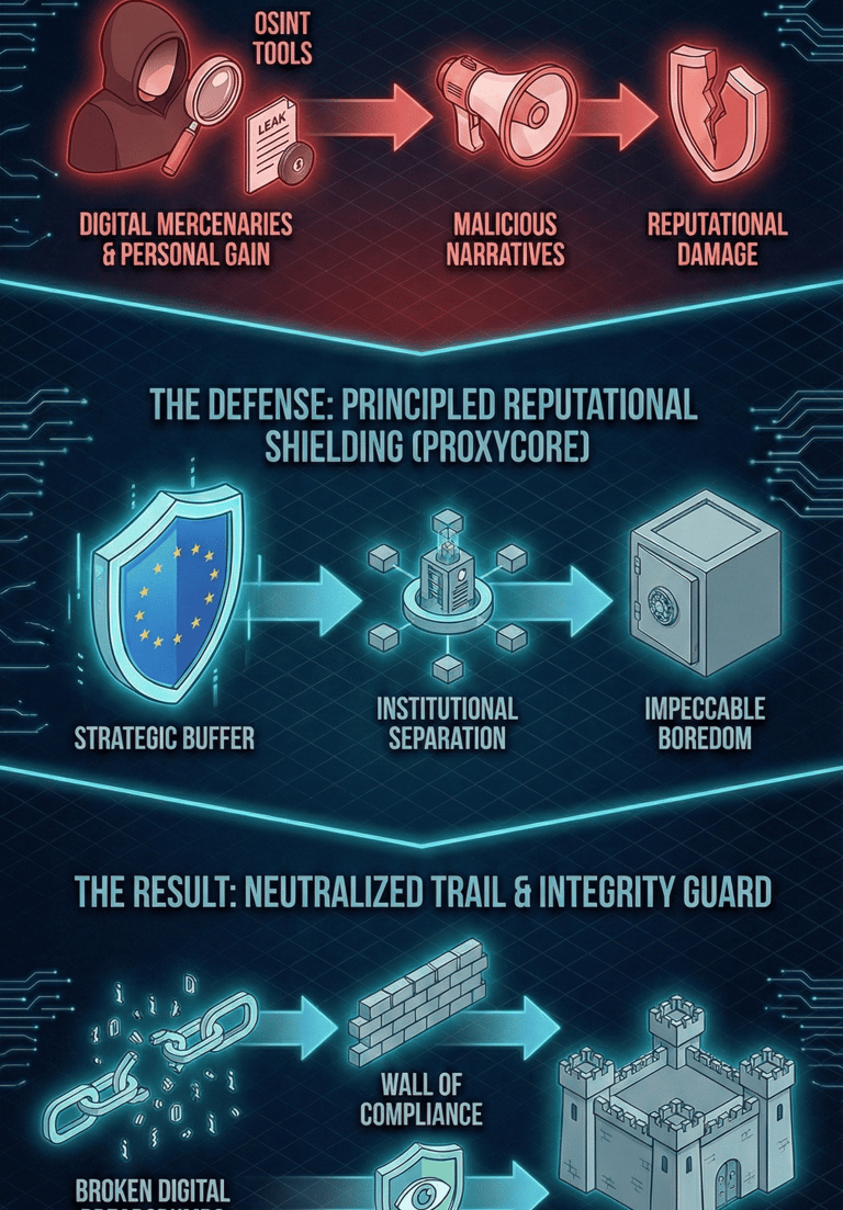 Neutralizing the 'Mercenary' Trail: We break the digital breadcrumbs that malicious actors use to connect private strategic interests with operational assets. When a bad-faith researcher investigates, they find only a wall of compliant, professional, and institutionally sound European governance.